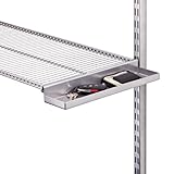 Dimensions: 12" Our Ventilated Shelf Bracket Accessories add great functionality to any elfa solution. Made from epoxy bonded steel, they provide visible and accessible storage for all sorts of accessories and garments. Use the Hooks for belts, ties, scarves, necklaces, sashes, caps, handbags, totes, robes, jackets, and coats. The Trays are ideal when storage is needed for jewelry, wallets, cell phones, change or other items.