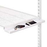Dimensions: 16" Our Ventilated Shelf Bracket Accessories add great functionality to any elfa solution. Made from epoxy bonded steel, they provide visible and accessible storage for all sorts of accessories and garments. Use the Hooks for belts, ties, scarves, necklaces, sashes, caps, handbags, totes, robes, jackets, and coats. The Trays are ideal when storage is needed for jewelry, wallets, cell phones, change or other items.