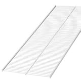 Our White elfa Ventilated Shelves come in three convenient depths and four convenient lengths. You'll be able to find just the one that fits your space. Use the 12" depth for hall closets, children's closets, and shallow pantry storage. The 16" depth is ideal for a linen or standard closet storage. The 20" depth is perfect for garage storage shelving or wherever deep shelving is desired. Two White elfa Ventilated Shelf Brackets are required to support each ventilated shelf. We can cut these shelves to any length free of charge. Contact Us for details. Click on the image to the left for an enhanced view of this product in a solution.||Exceptionally durable epoxy-bonded steel construction